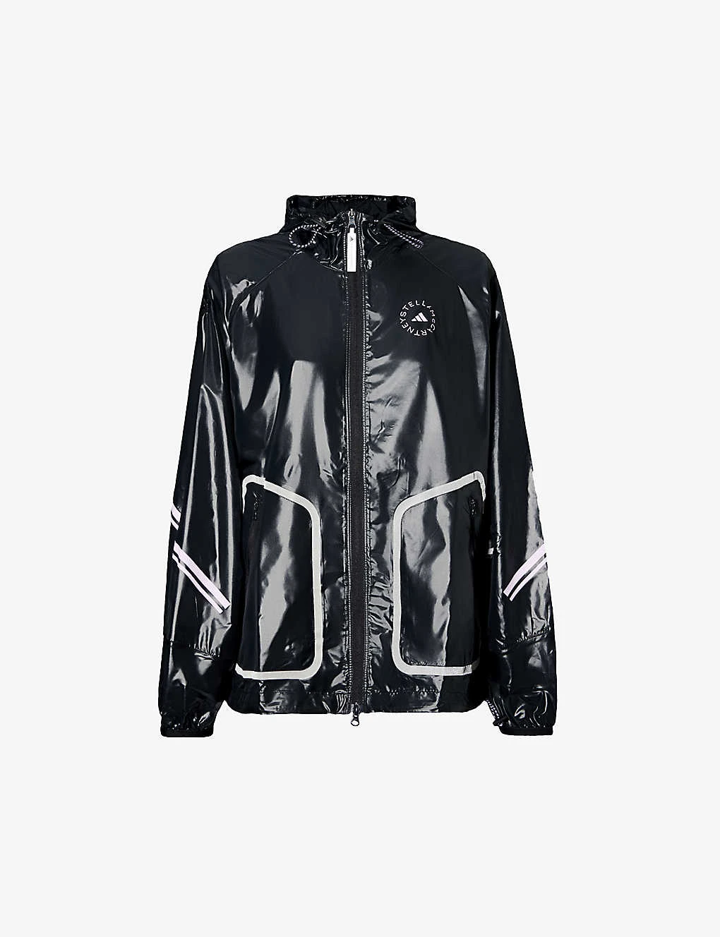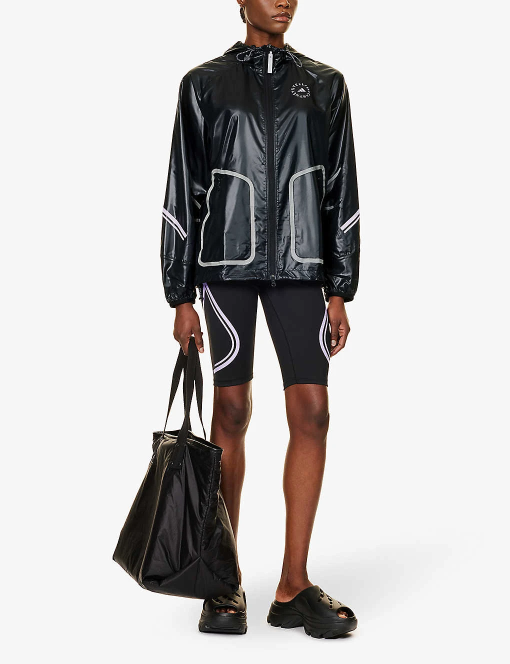 Adidas By Stella Mccartney Brand-print Relaxed-fit Recycled-polyester Hooded Jacket