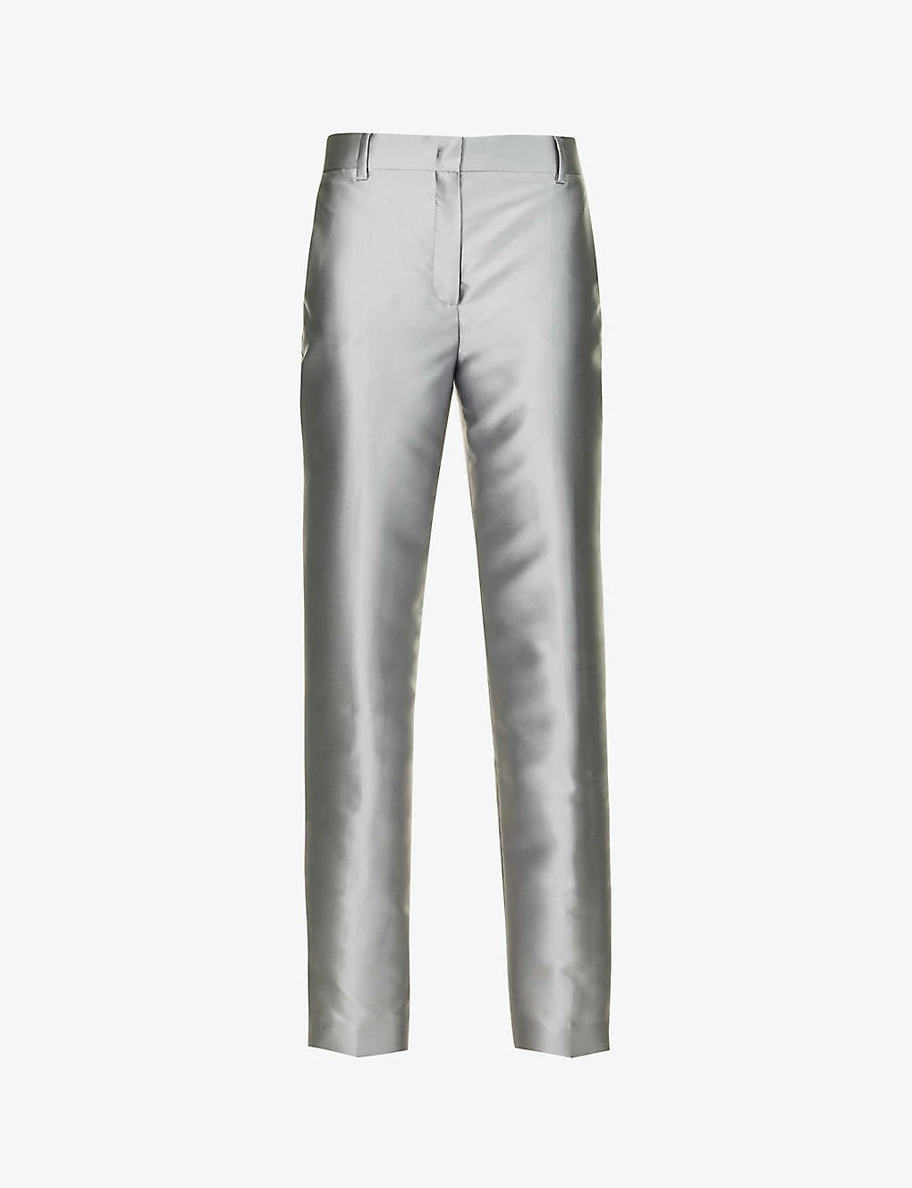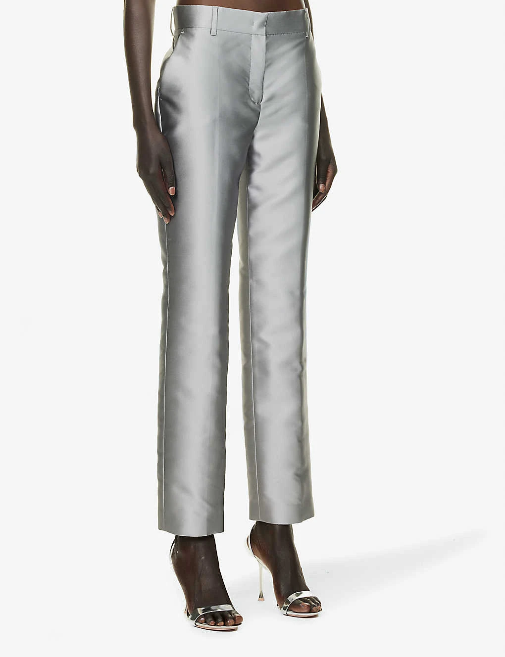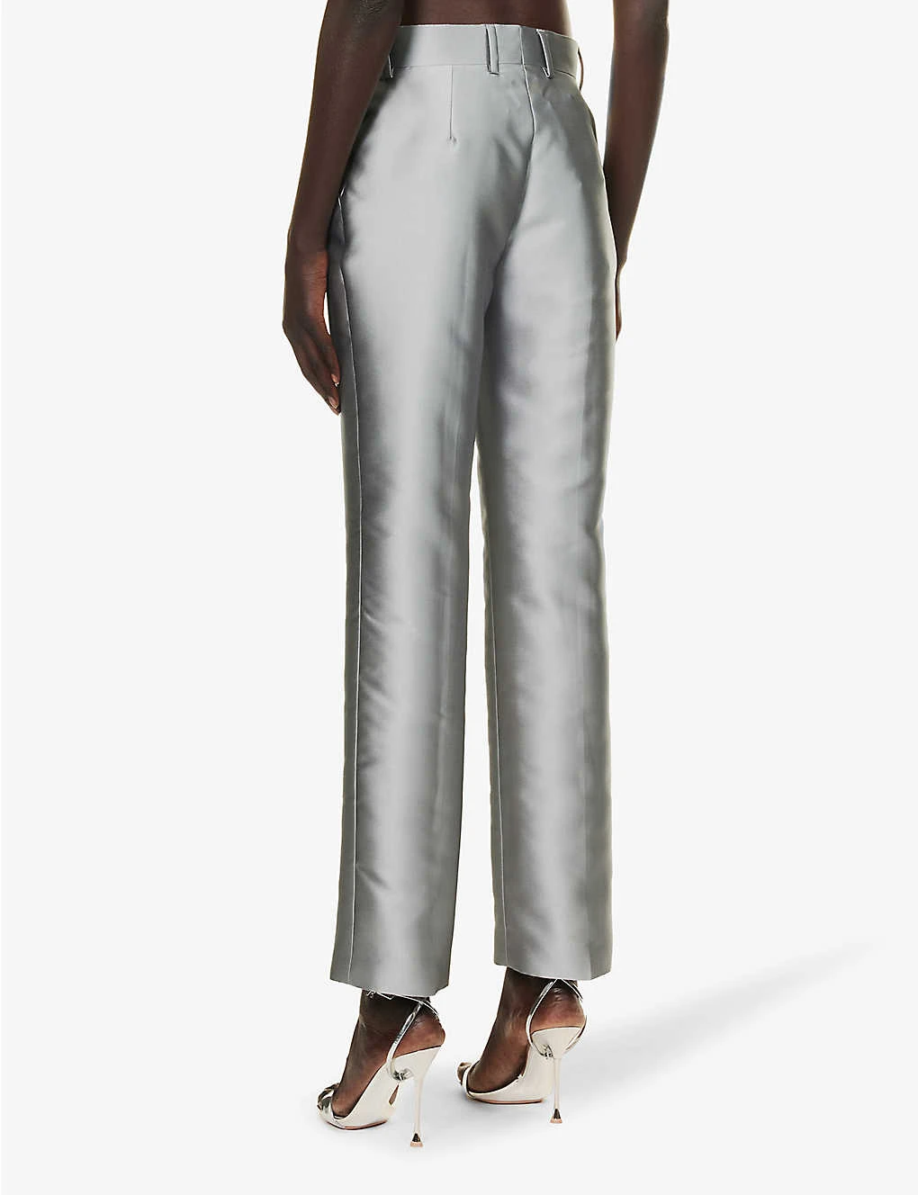 Alberta Ferretti Mikado Pressed-crease Straight-leg Silk-blend Trousers