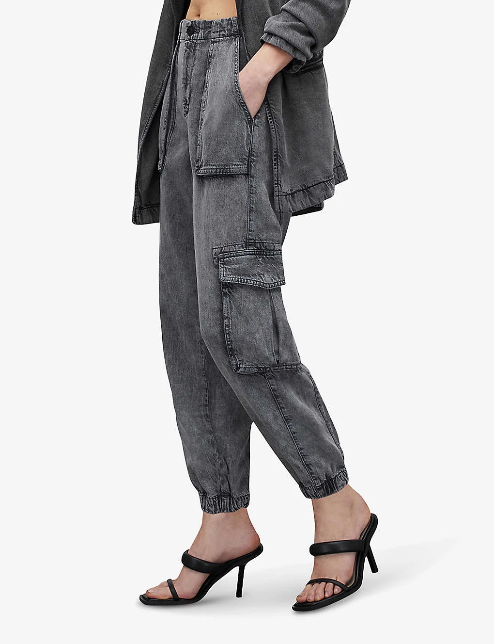AllSaints Frieda High-rise Tapered-leg Denim Cargo Trousers