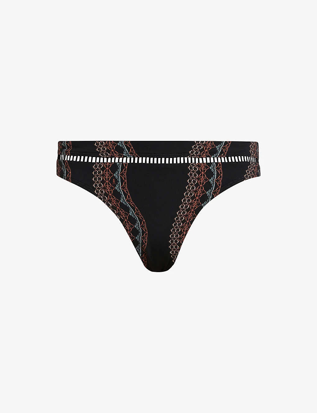 AllSaints Gorah Geometric-print Stretch Recycled-nylon Bikini Bottoms
