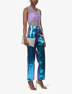 - Regular fit, high rise, structured waistband, gold-toned chain at waist, two slip pockets at front, darts at front and back