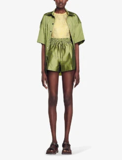 - Relaxed fit, mid-rise, straight leg, elasticated waistband, two slip pockets at sides, all-over stripe pattern