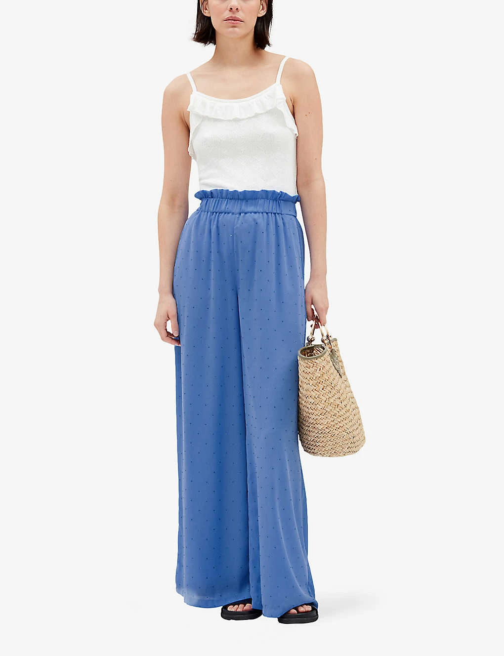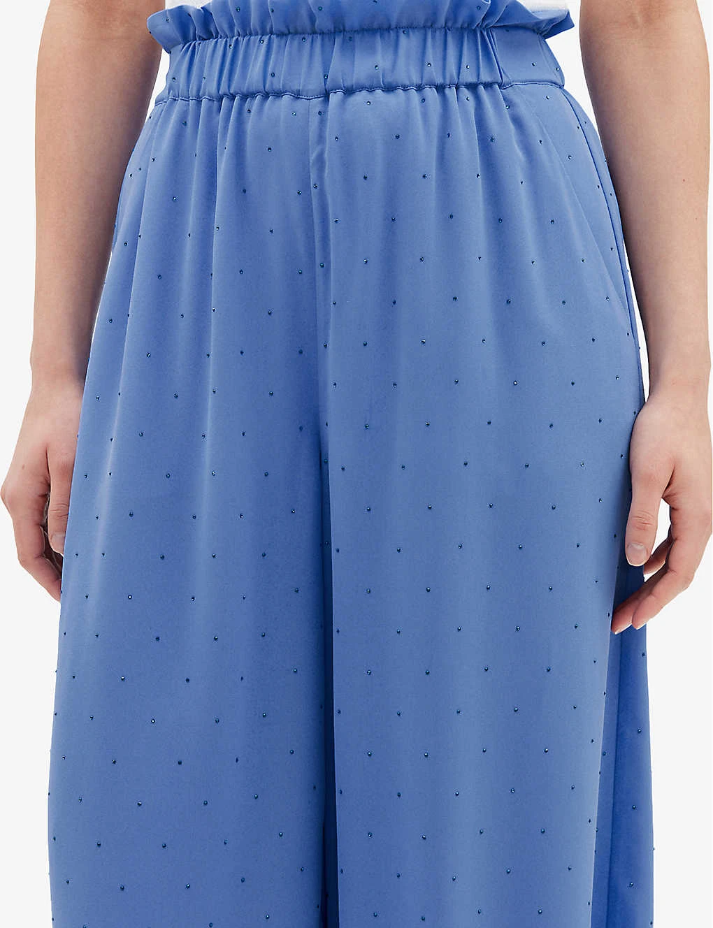 - Relaxed-fit, high-rise elasticated waistband, wide-leg, two slip pockets at the side, all-over crystal embellishment
