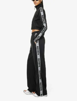 - Regular fit, mid-rise, drawstring elasticated waistband, two slip pockets at front, brand text rhinestone design at front