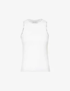 - Regular fit, round neck, sleeveless, dropped armholes, ribbed trims with brand text pattern, ribbed trims