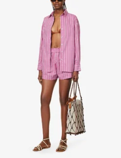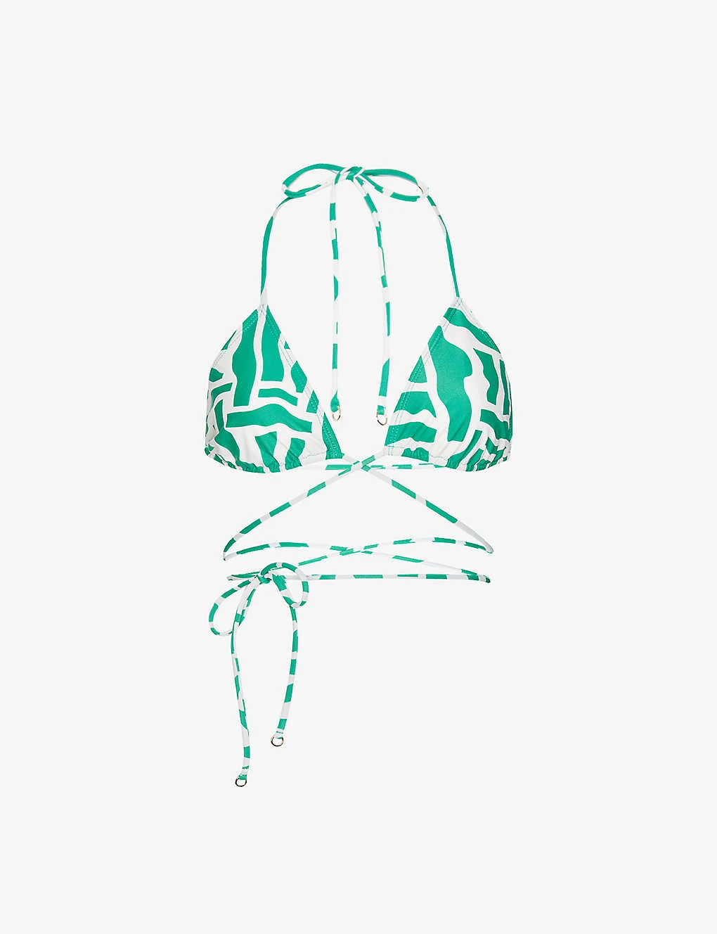- Regular-fit, halterneck, soft triangle cups with padding, all-over hand-printed design, hand-dyed, contrast stitching