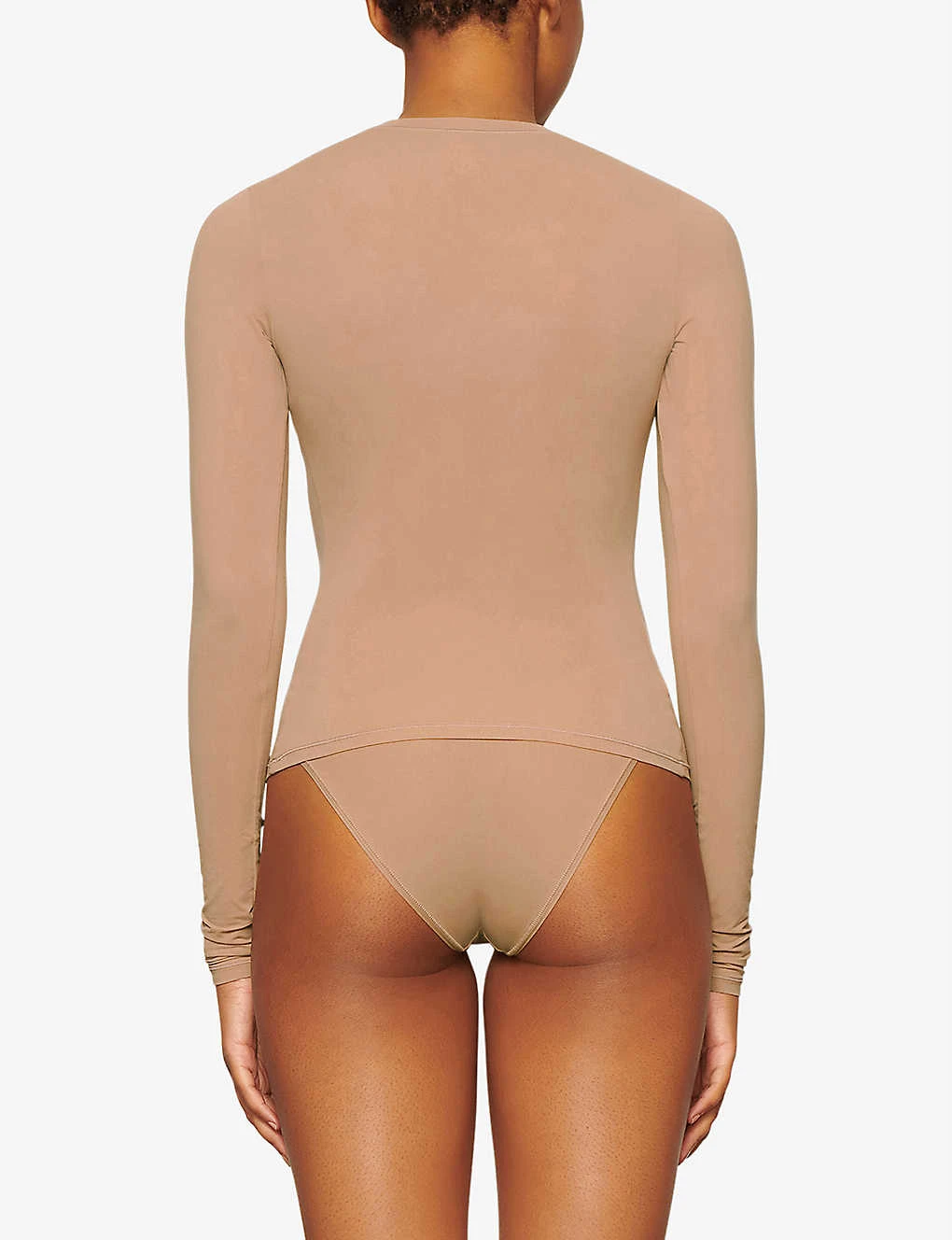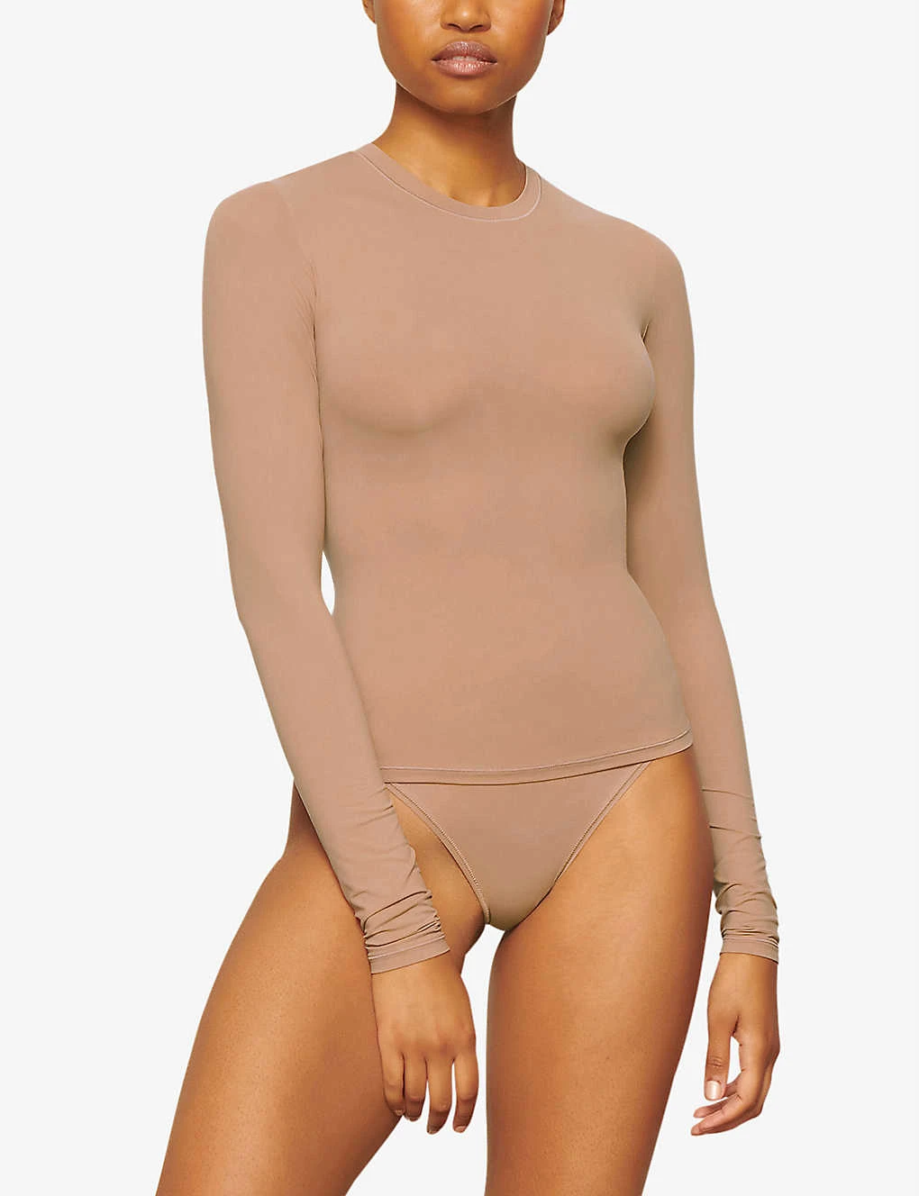 - Fitted, round neck, long sleeves, seamless