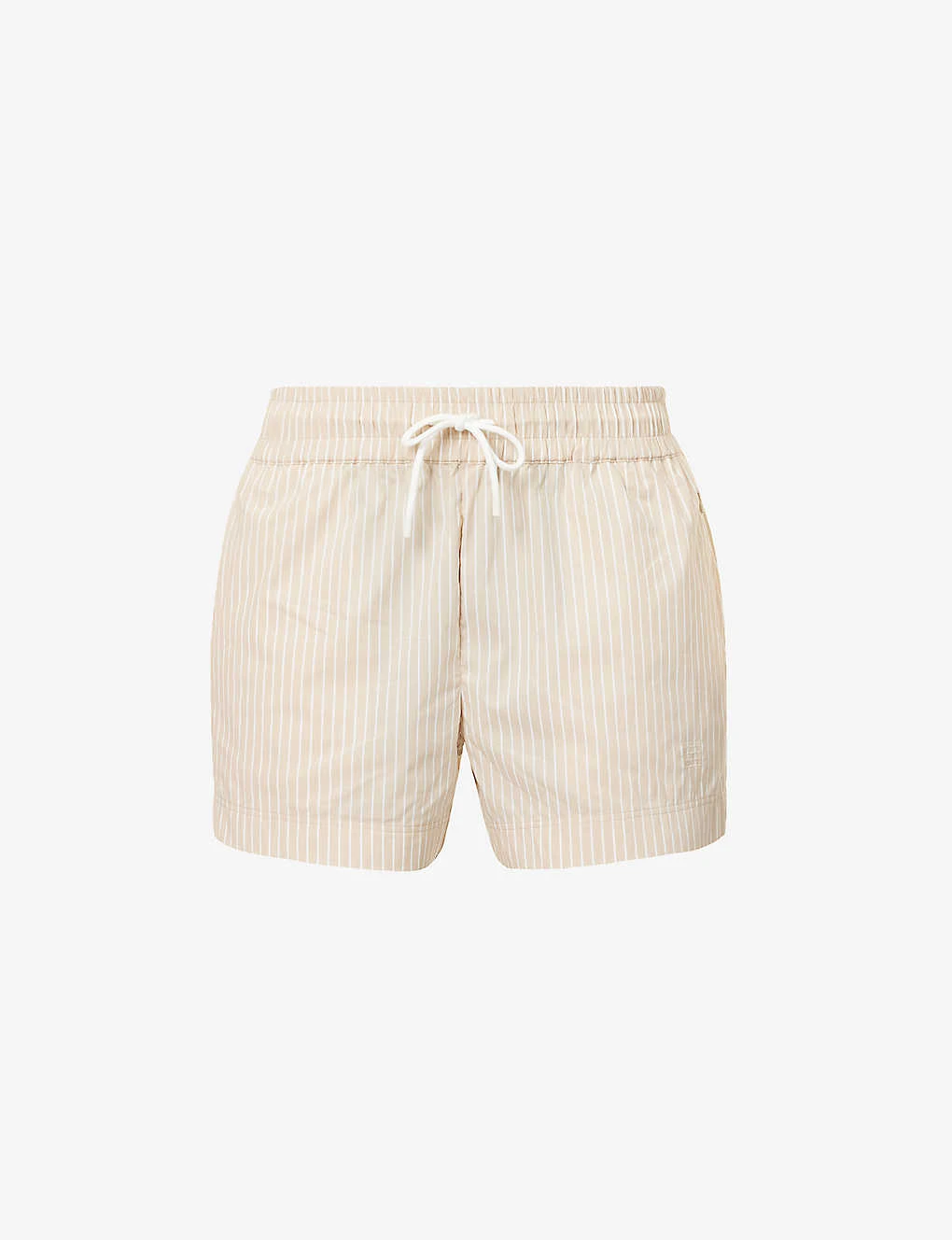 - Relaxed fit, mid-rise, elasticated drawstring waistband, two zipped pockets at sides, embroidered branding at front, all-over striped pattern, partially lined