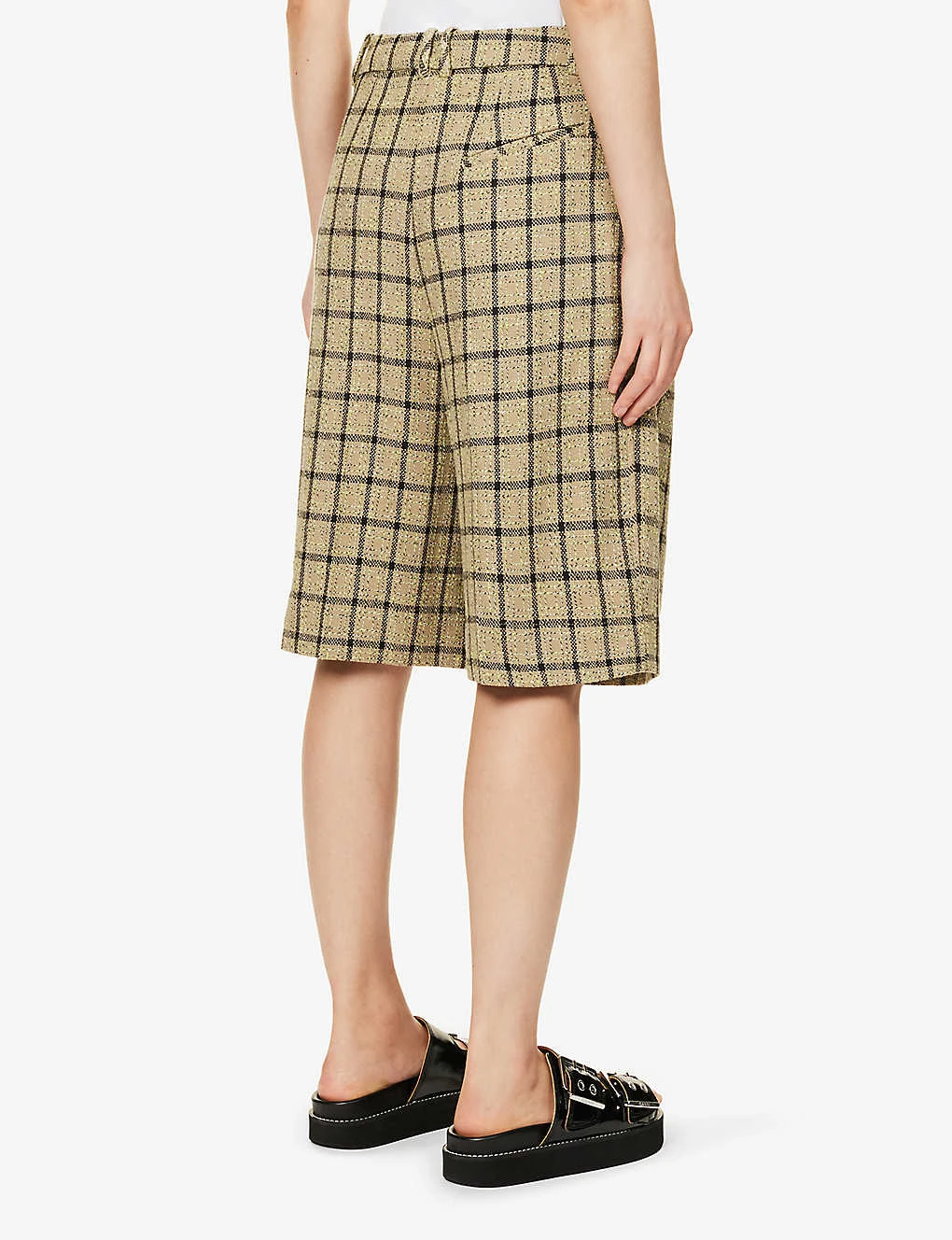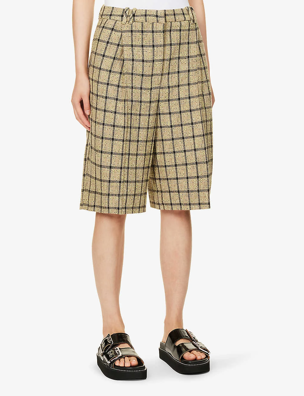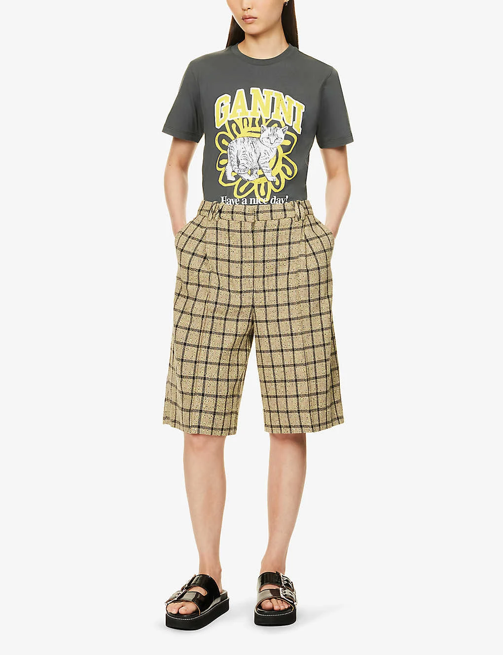 Ganni Checked Mid-rise Organic Cotton-blend Shorts