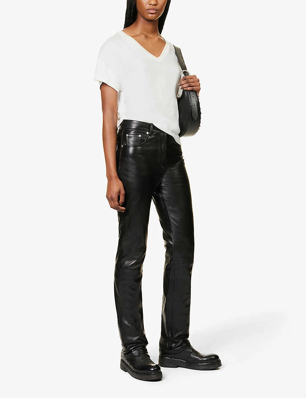 - Relaxed fit, V-neckline, ribbed trim at neck with metallic thread, short sleeves, semi-sheer