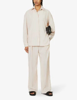 - Relaxed fit, mid-rise, straight leg, elasticated waistband, embroidered branding at waistband, two slip pockets at front, all-over striped pattern