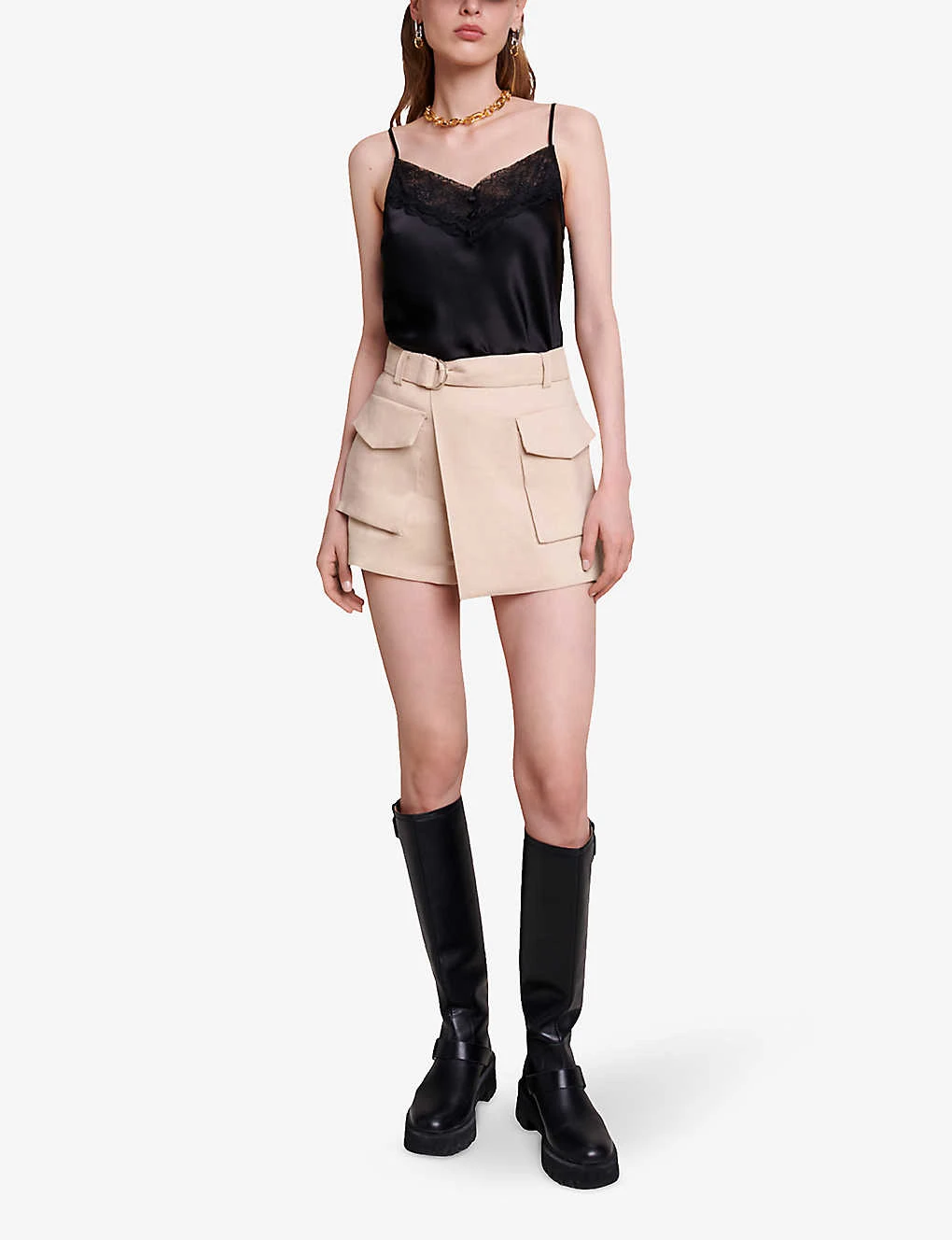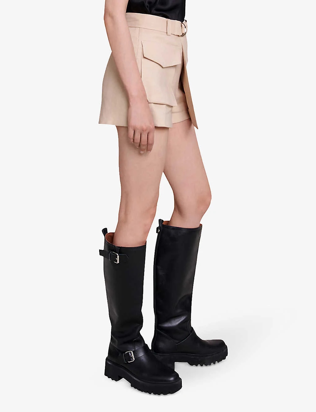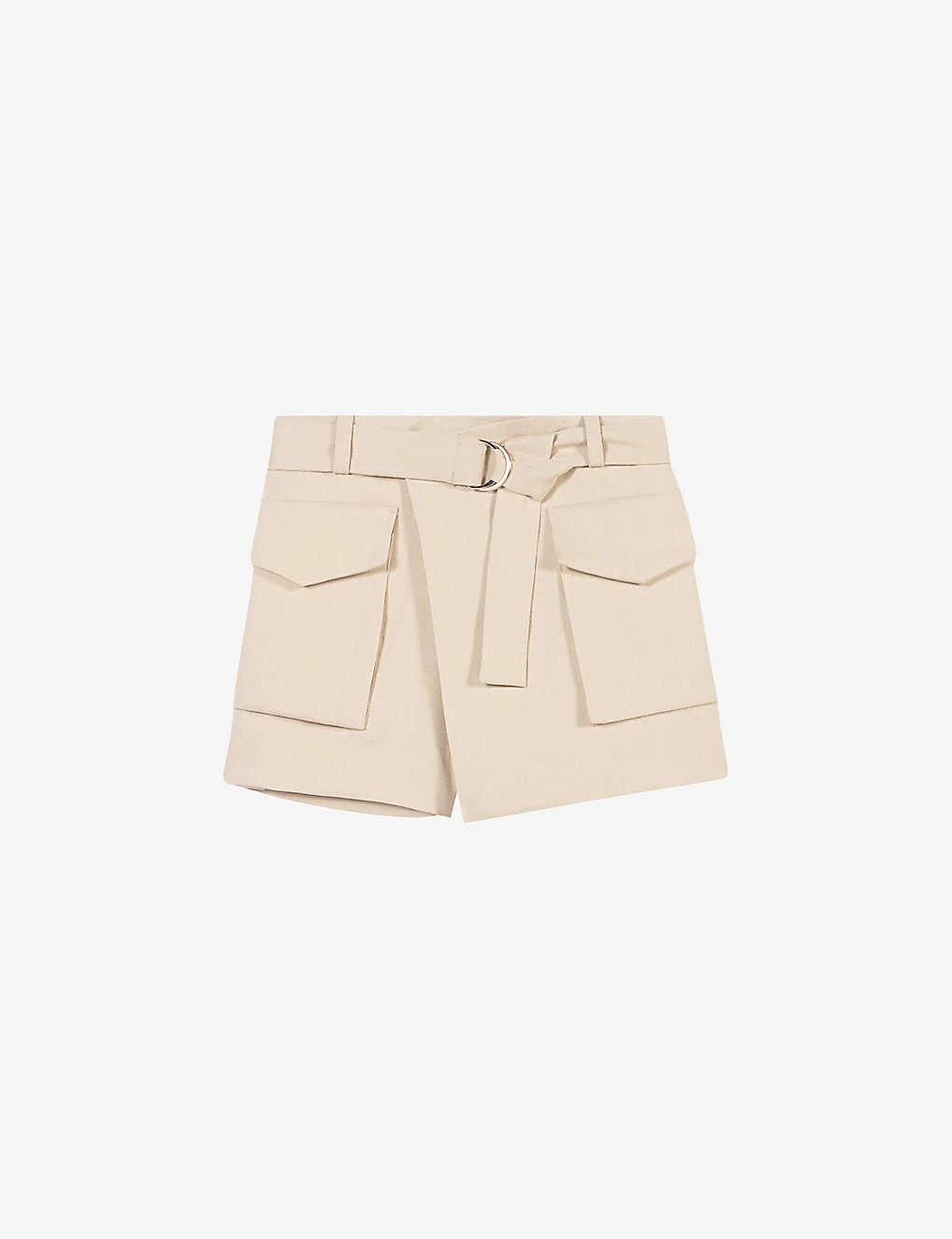 Maje Iosta Pocket-detail Asymmetric-hem Linen-blend Shorts