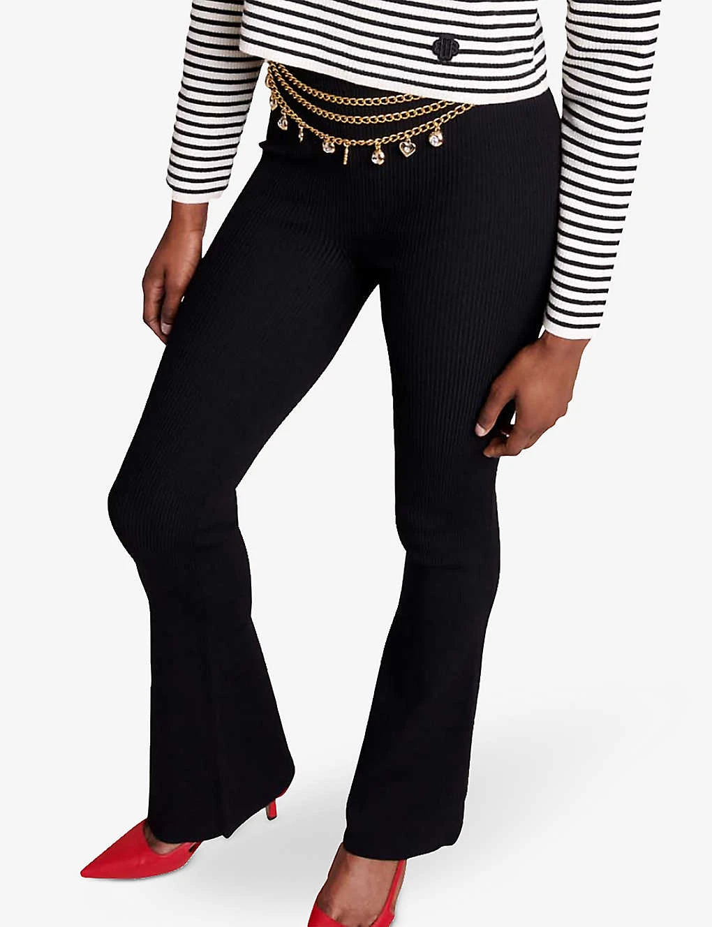 Maje Pariso Flared-leg High-rise Stretch Ribbed-knit Trousers