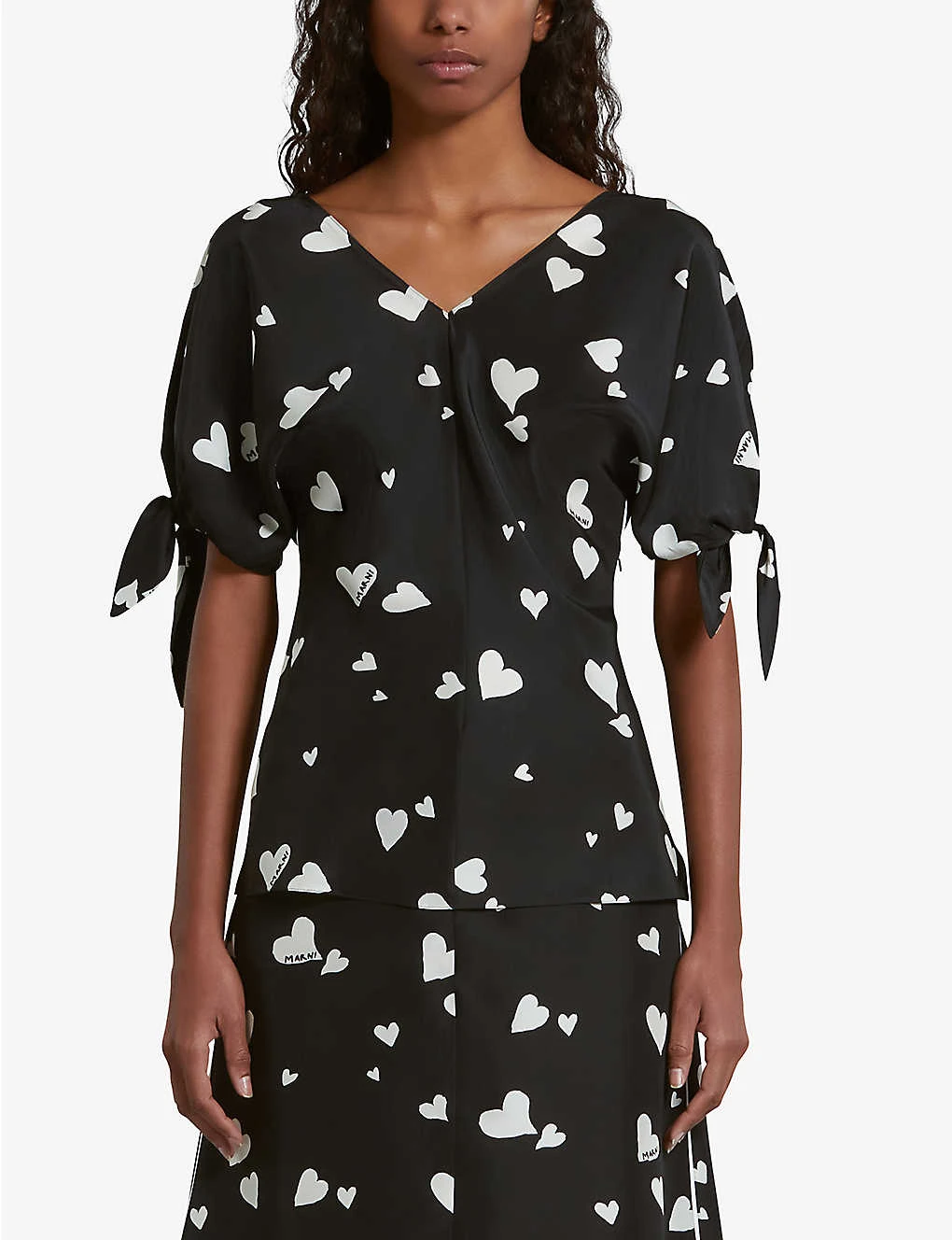 Be the first to review “Marni Heart-print Bow-sleeve Silk Top” Cancel reply