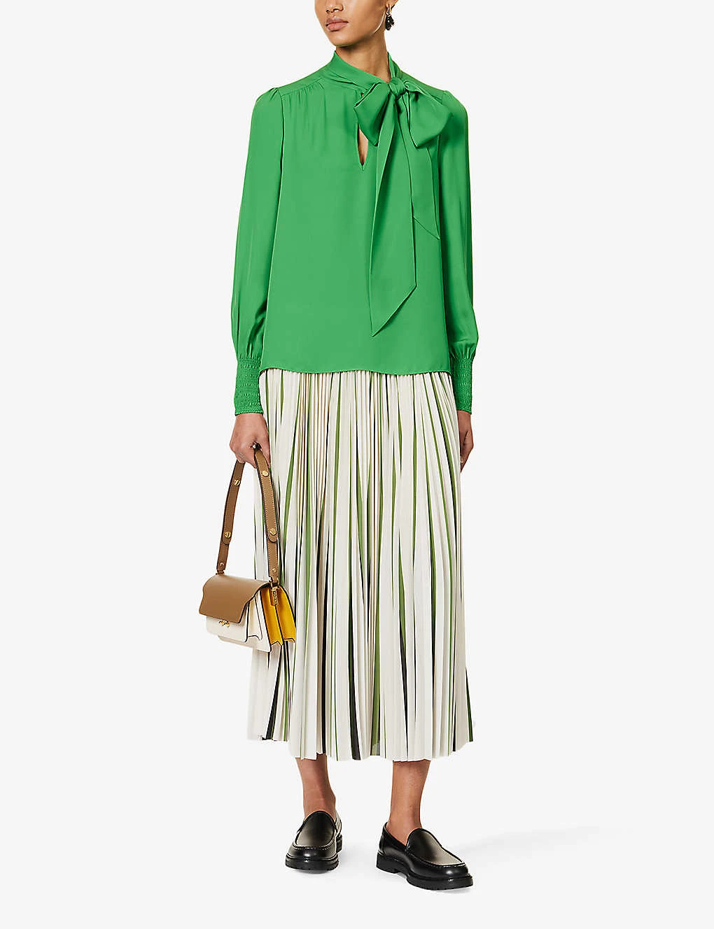 ME AND EM Shirred-trim Self-tie Silk Blouse