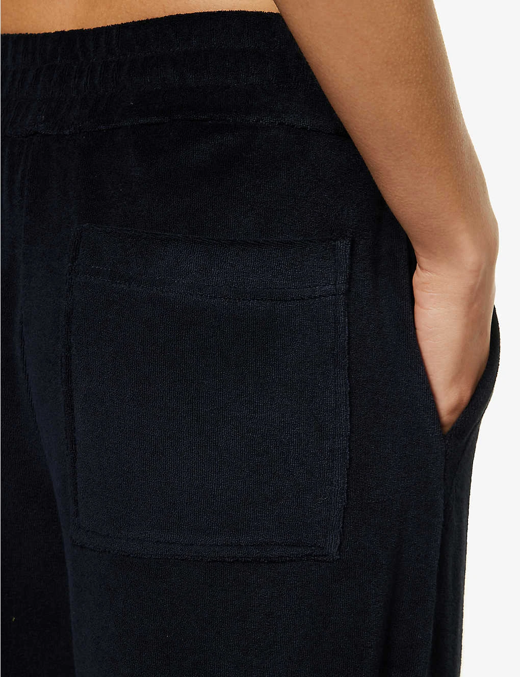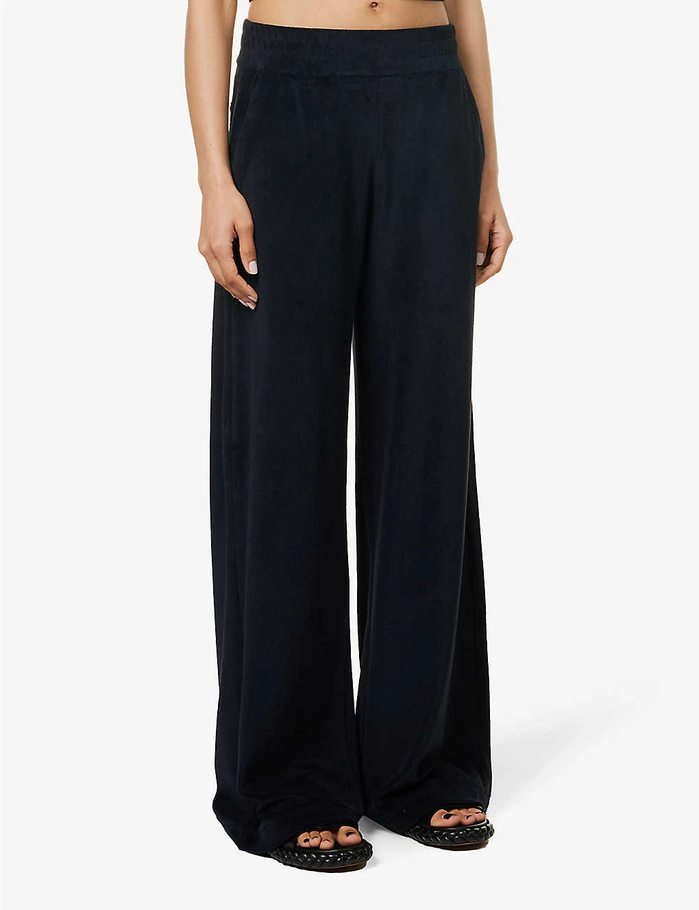 - Regular fit, mid-rise, wide leg, structured elasticated waistband, two slip pockets at front, two patch pockets at back, all-over towelling texture