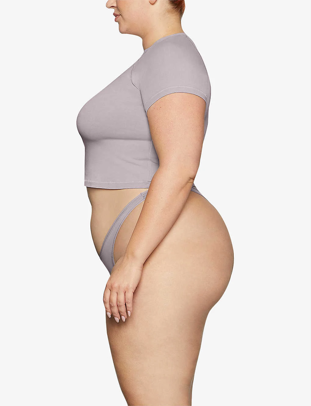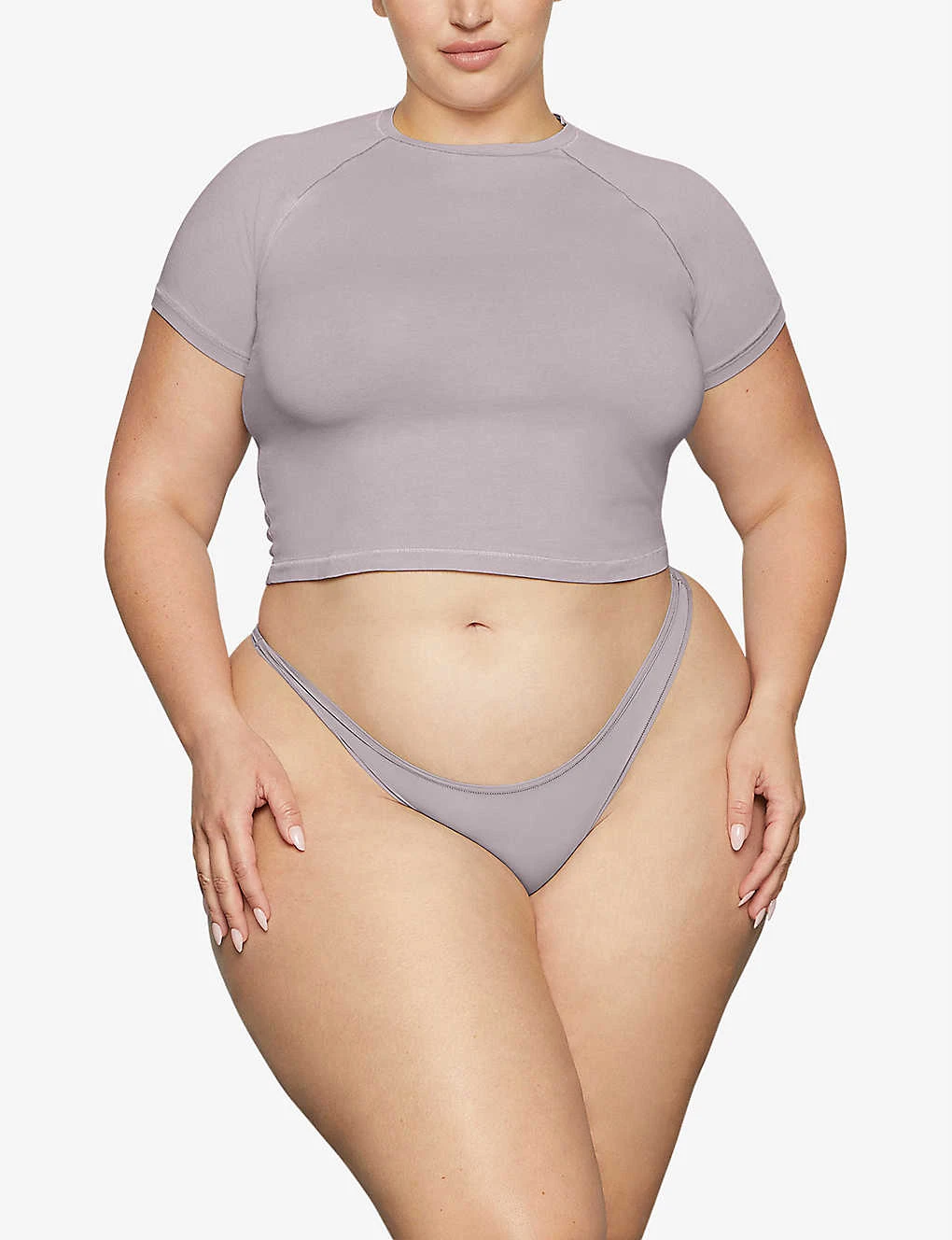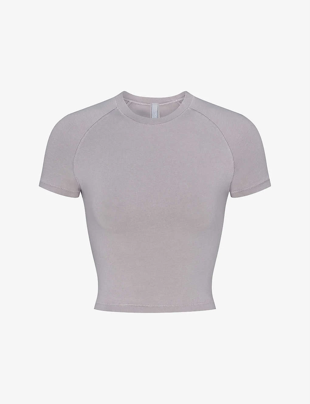- Slim fit, short raglan sleeves, round neck, cropped hem