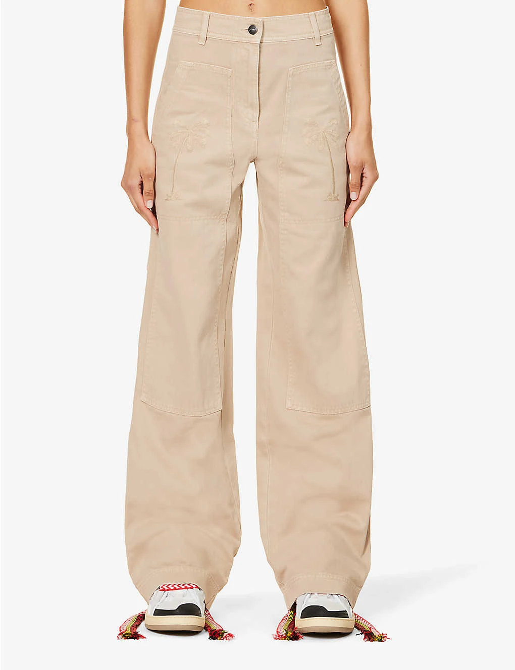 Be the first to review “Palm Angels Bull Brand-patch Wide-leg Mid-rise Cotton Trousers” Cancel reply