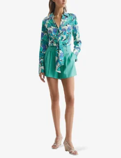 Reiss Daniella Floral-print Side-tie Stretch-woven Bikini Bottoms