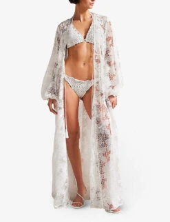 Ted Baker Layleta Frilled-trim Lace-effect Stretch-woven Bikini Bottoms