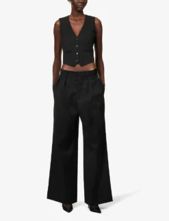 Structured-waist Pleated Wide-leg Low-rise Wool Trousers