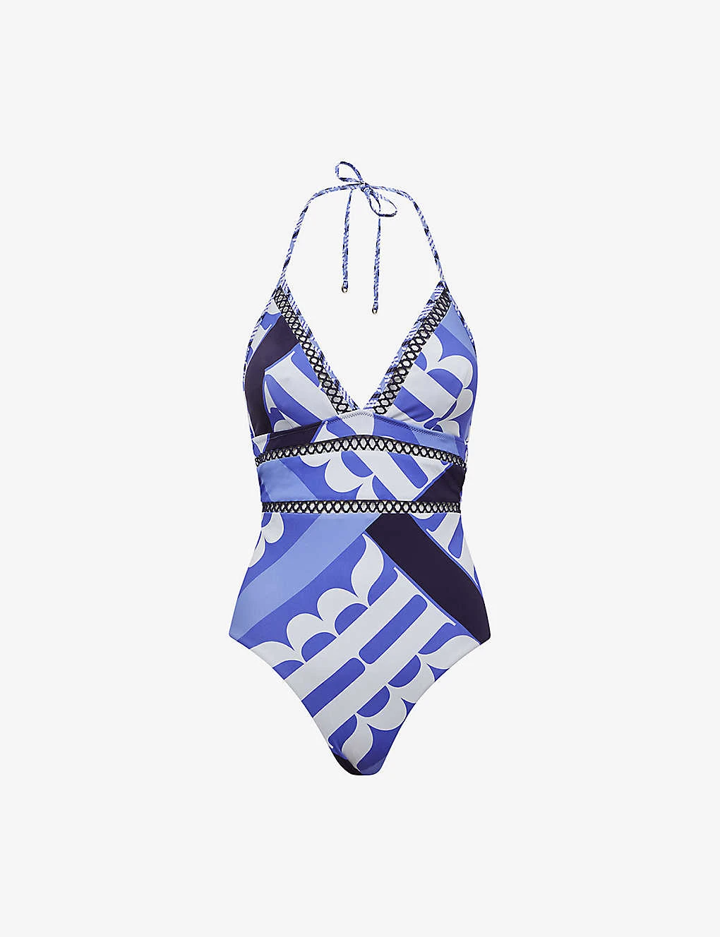Reiss Gia Graphic-print Halterneck Stretch-woven Swimsuit