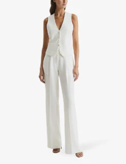 Reiss Lena Contrast-waist Wide-leg High-rise Stretch-woven Trousers