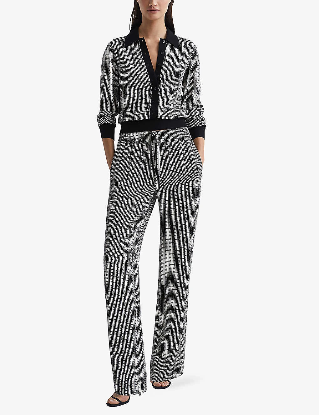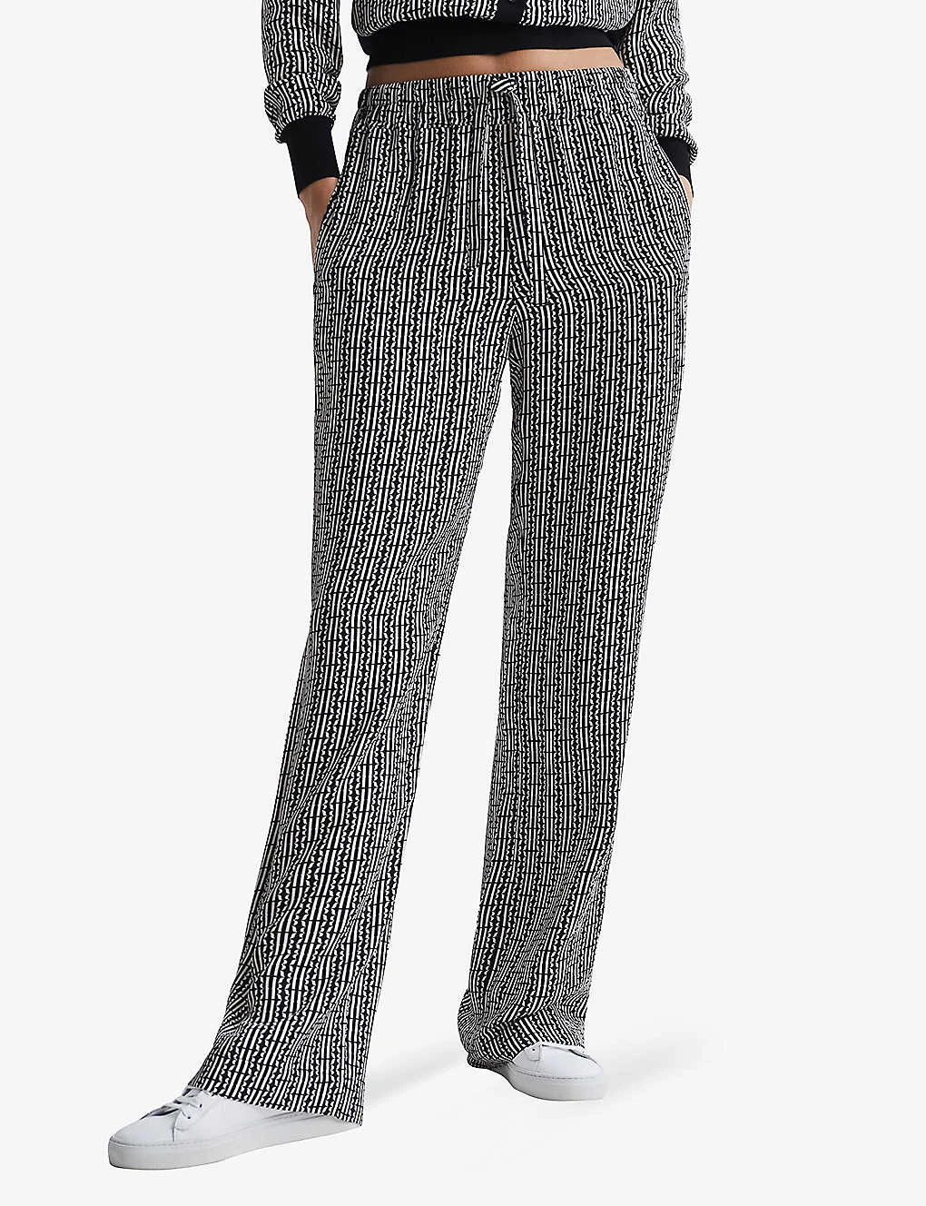 Reiss Sky Abstract-print Wide-leg Mid-rise Woven Trousers