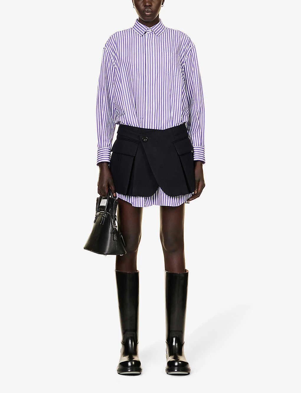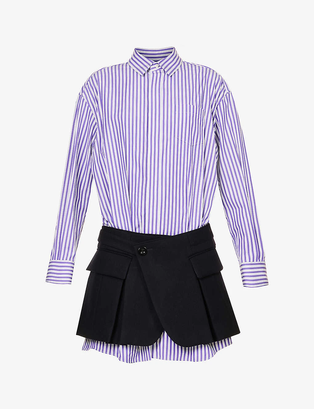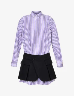 Sacai Skirt-overlay Striped Cotton-poplin Mini Dress
