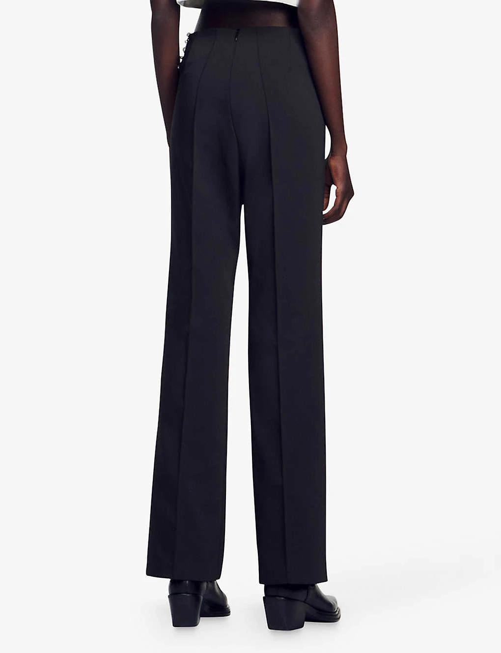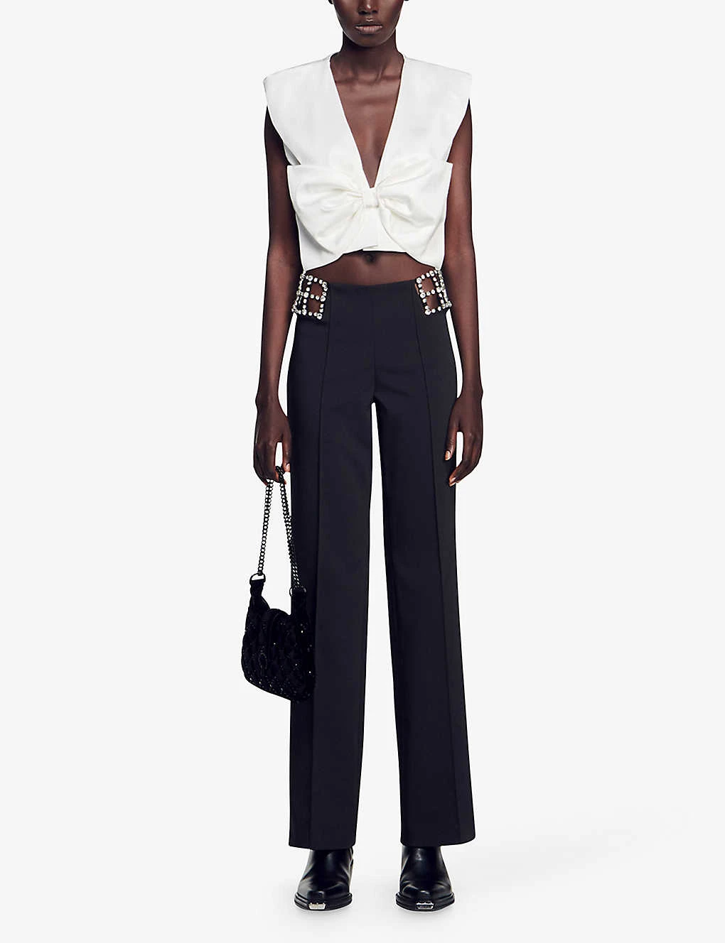 Sandro Duchamp High-rise Rhinestone-panel Stretch-woven Trousers