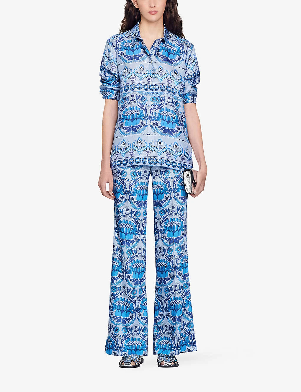 Be the first to review “Sandro Peridot Floral-print Wide-leg Mid-rise Woven Trousers” Cancel reply