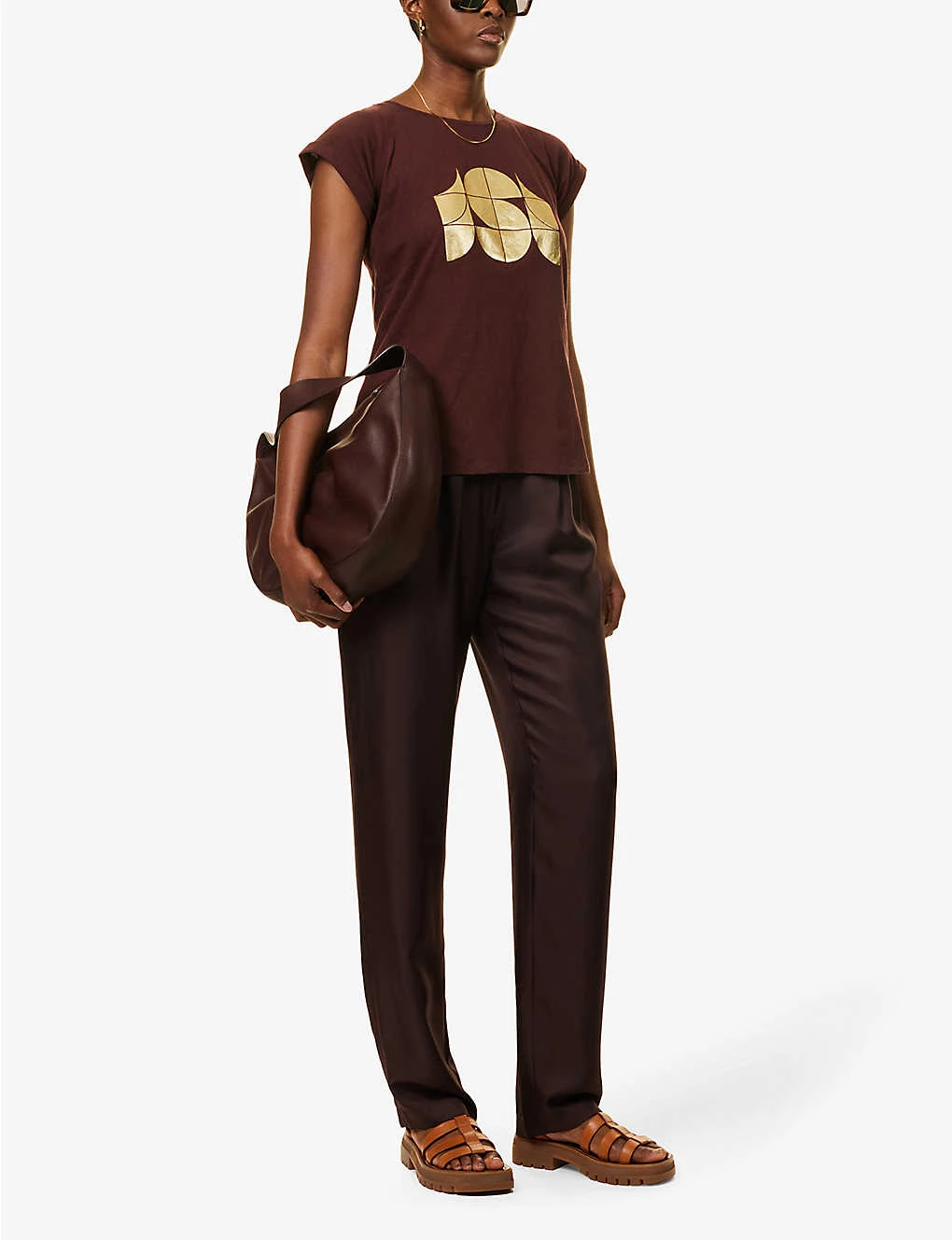 - Round neck, dropped shoulders, short sleeves, relaxed fit, logo-print, straight hem