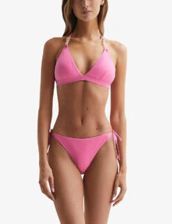 Reiss Ripley Triangle-shape Chain-embellished Stretch-woven Bikini Top