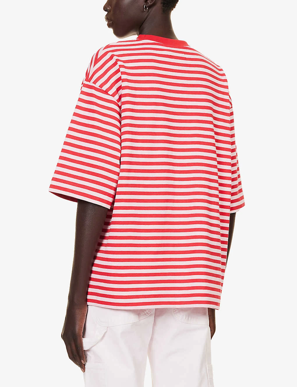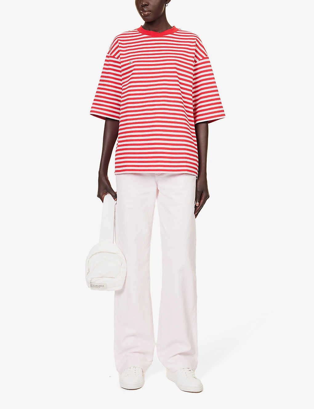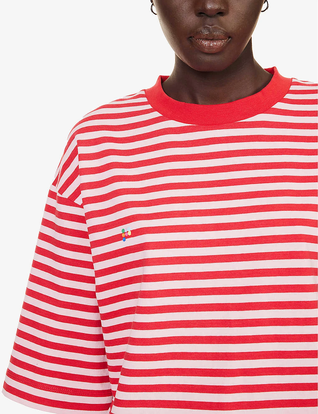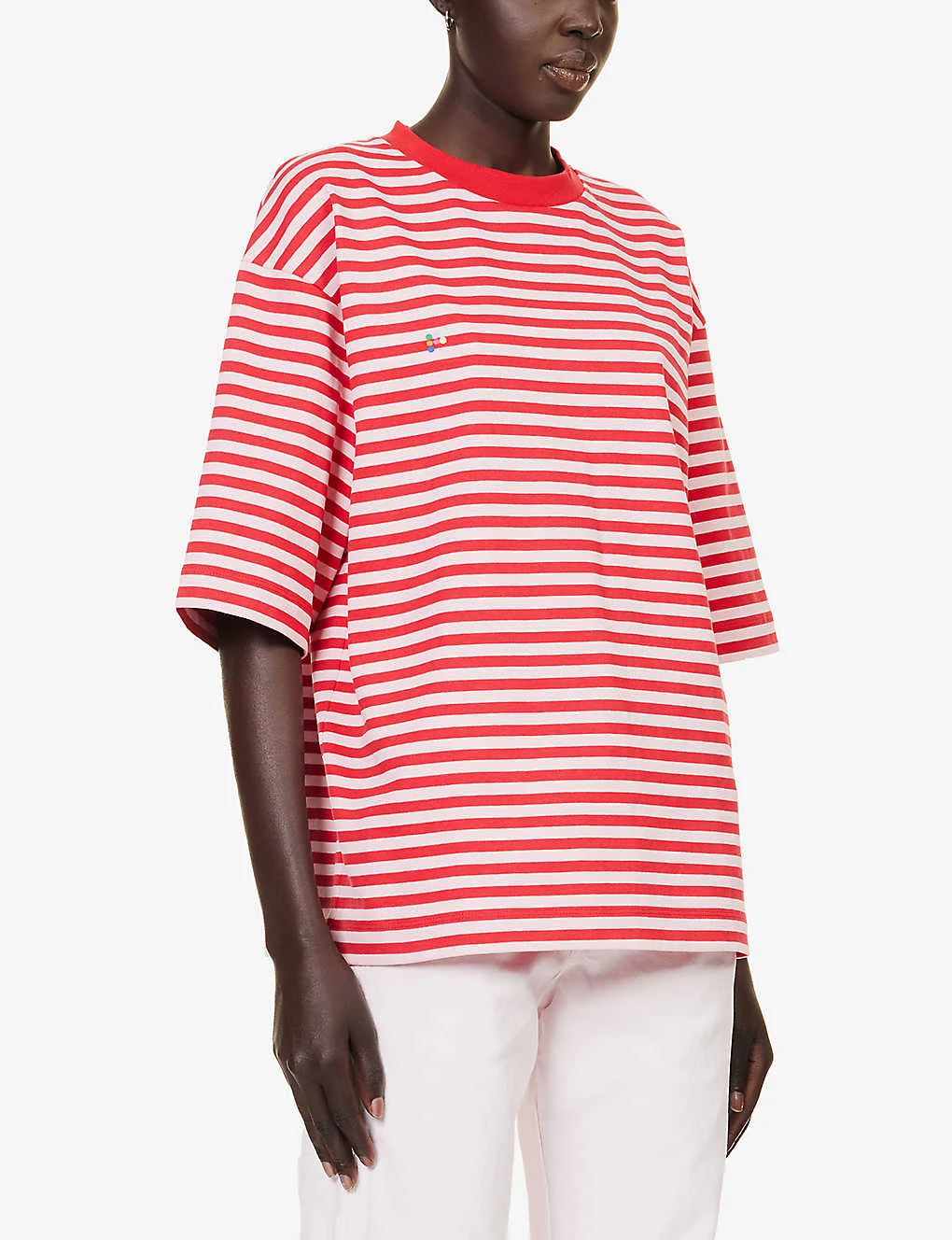 Stripe-pattern Brand-embroidered Recycled-cotton T-shirt