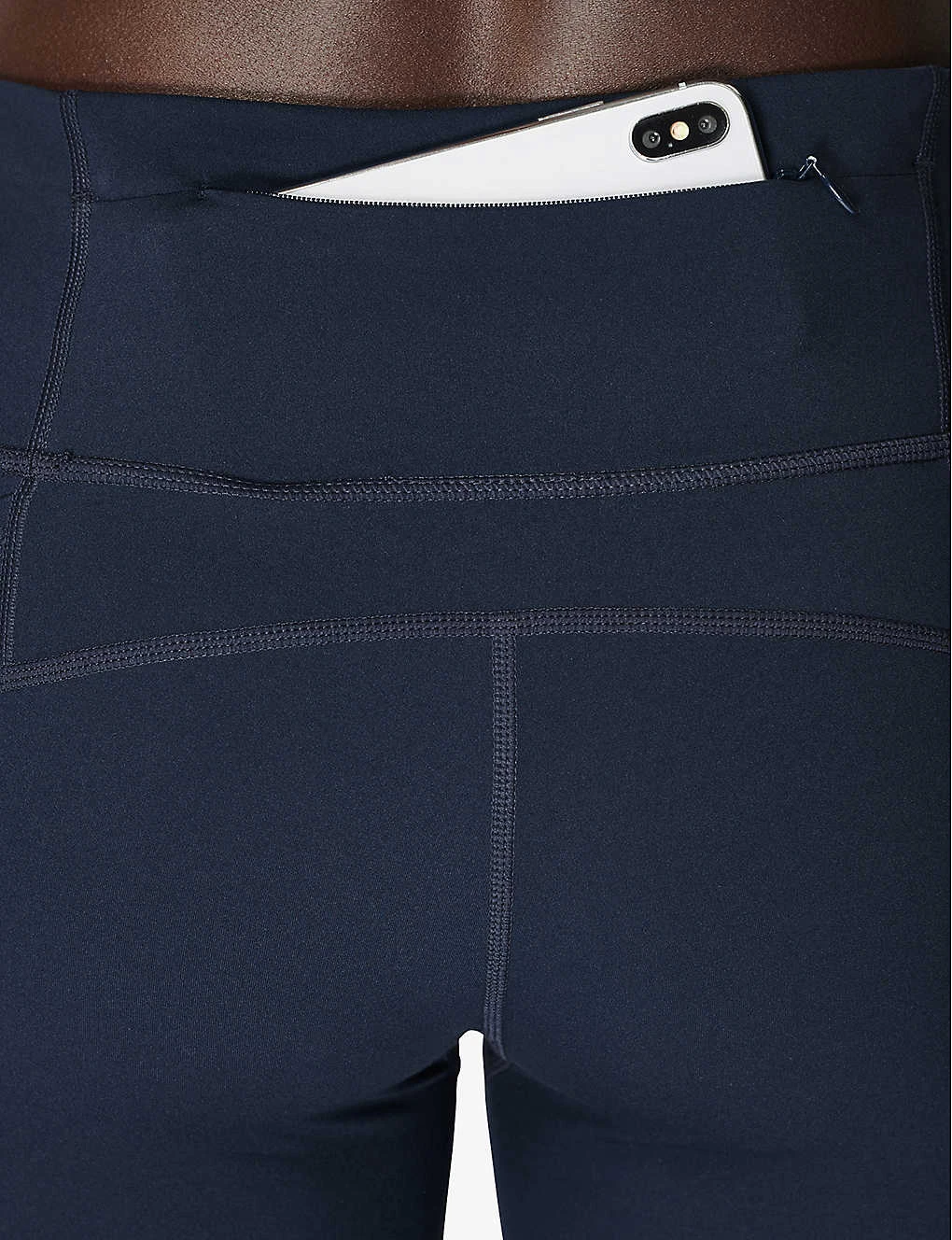 - High-rise, elasticated drawstring waistband, side pocket, bum-sculpting technology, zip pocket at back