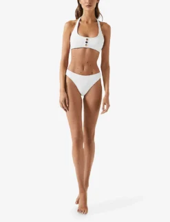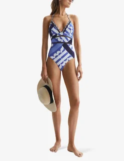 Reiss Shereen Graphic-print Lattice-trim Recycled-nylon Bikini Top