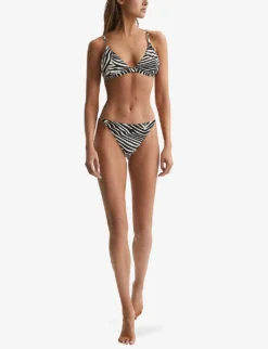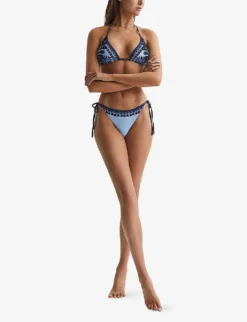Reiss Thia Triangle Graphic-print Stretch Recycled-nylon Bikini Top