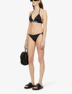 By Malina Elena Shell-print Stretch Recycled-nylon Bikini Top