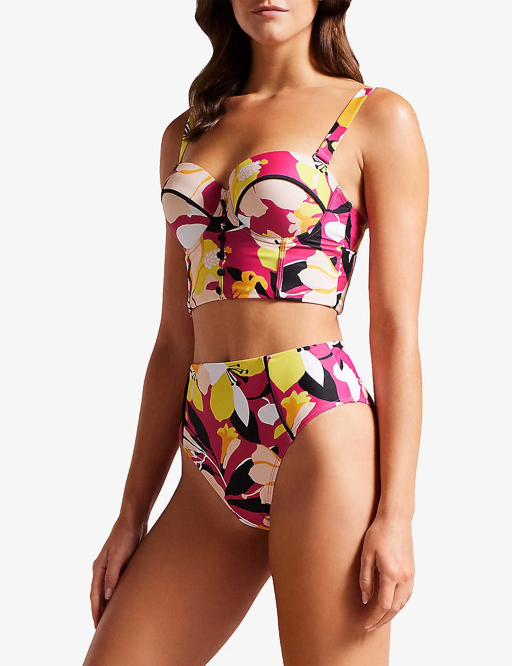 Ted Baker Marthya Floral-print High-waisted Bikini Bottoms