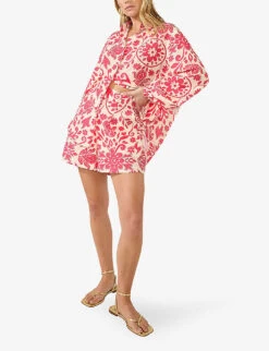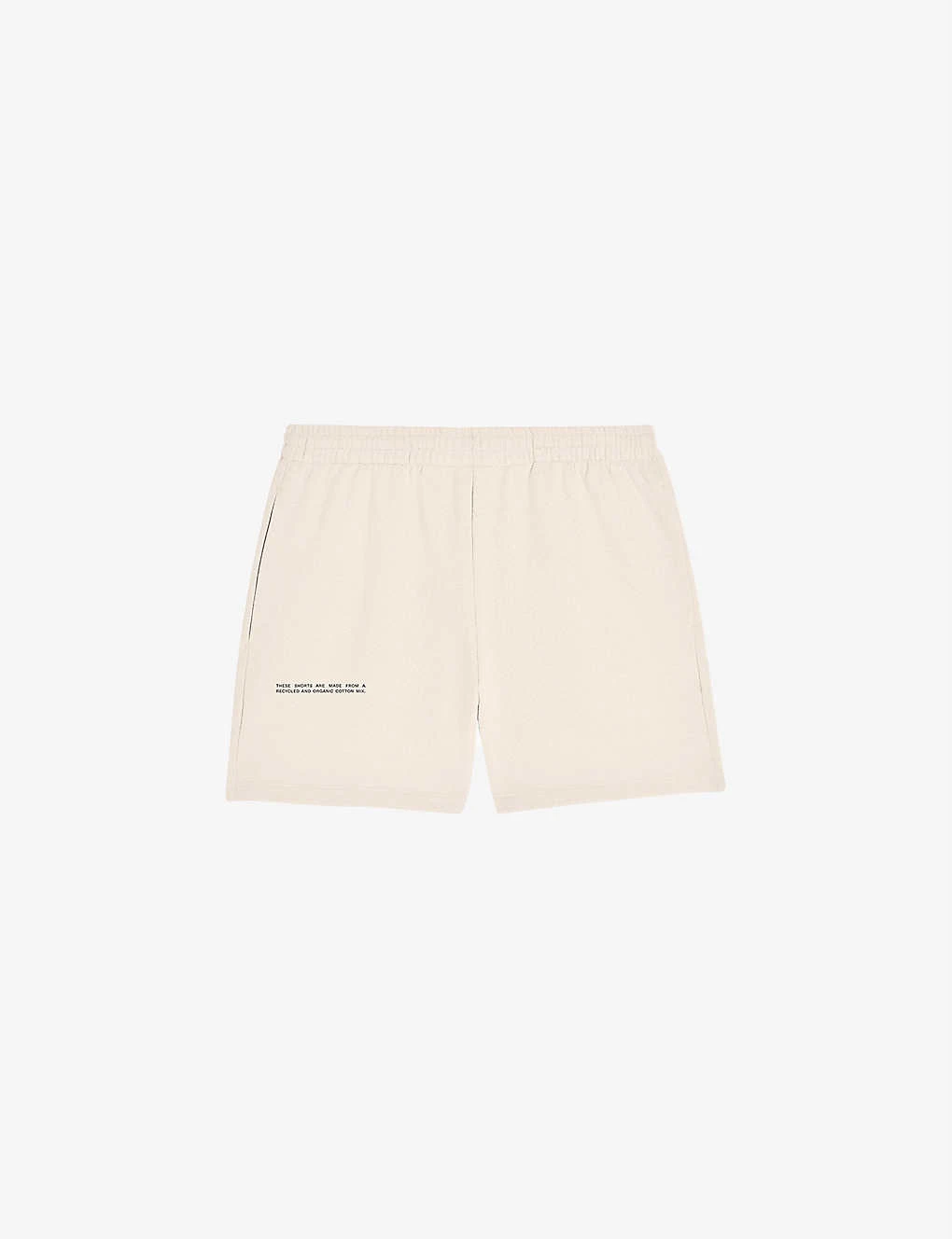 Text-print Mid-rise Recycled And Organic Cotton-blend Shorts