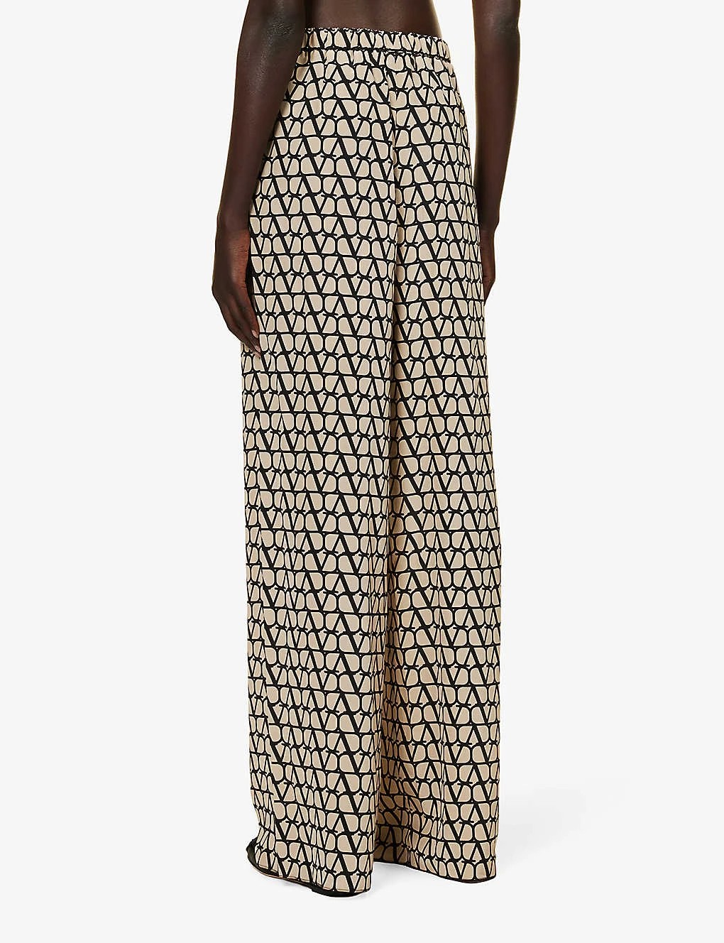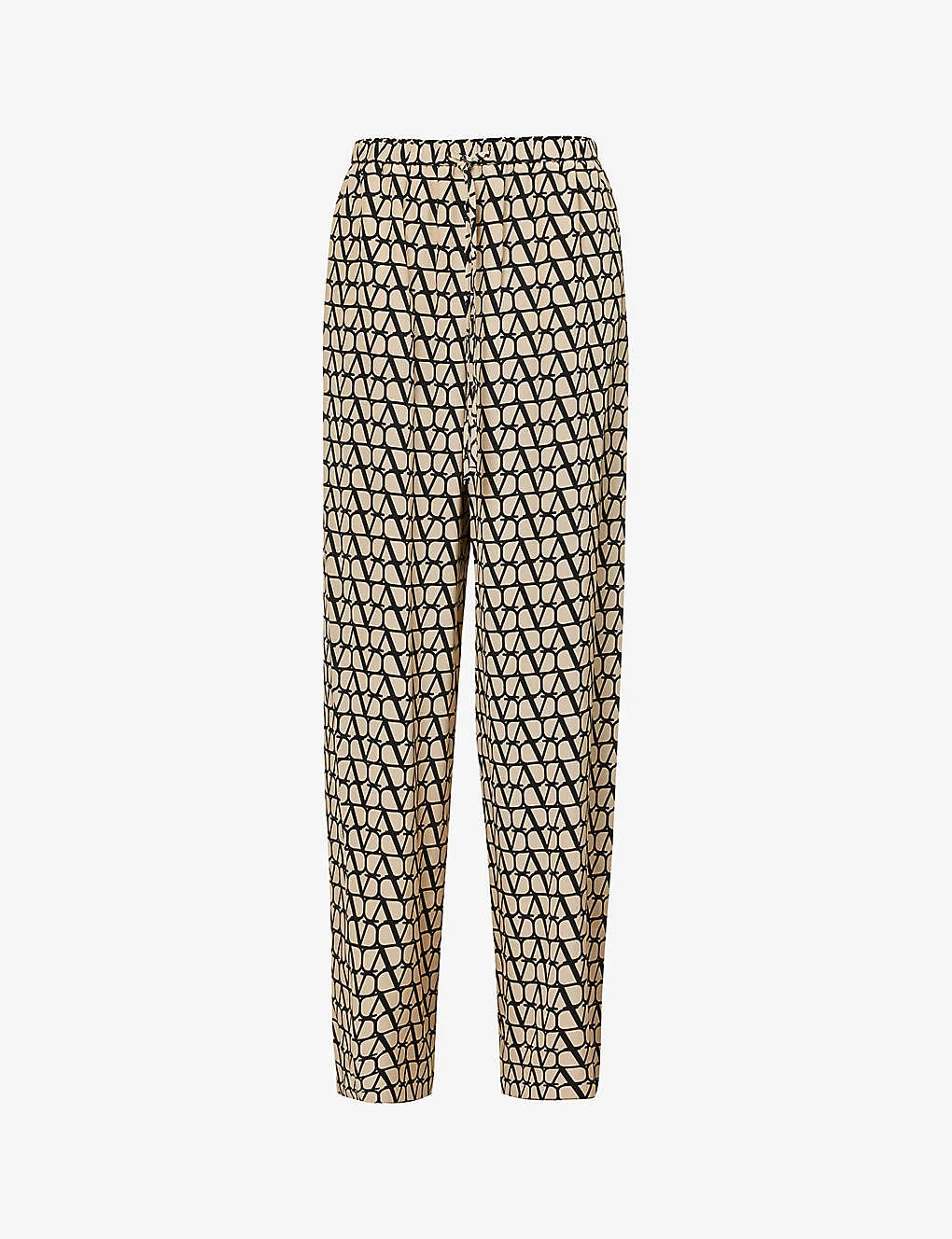 Valentino Monogram-print Straight-leg Silk Trousers