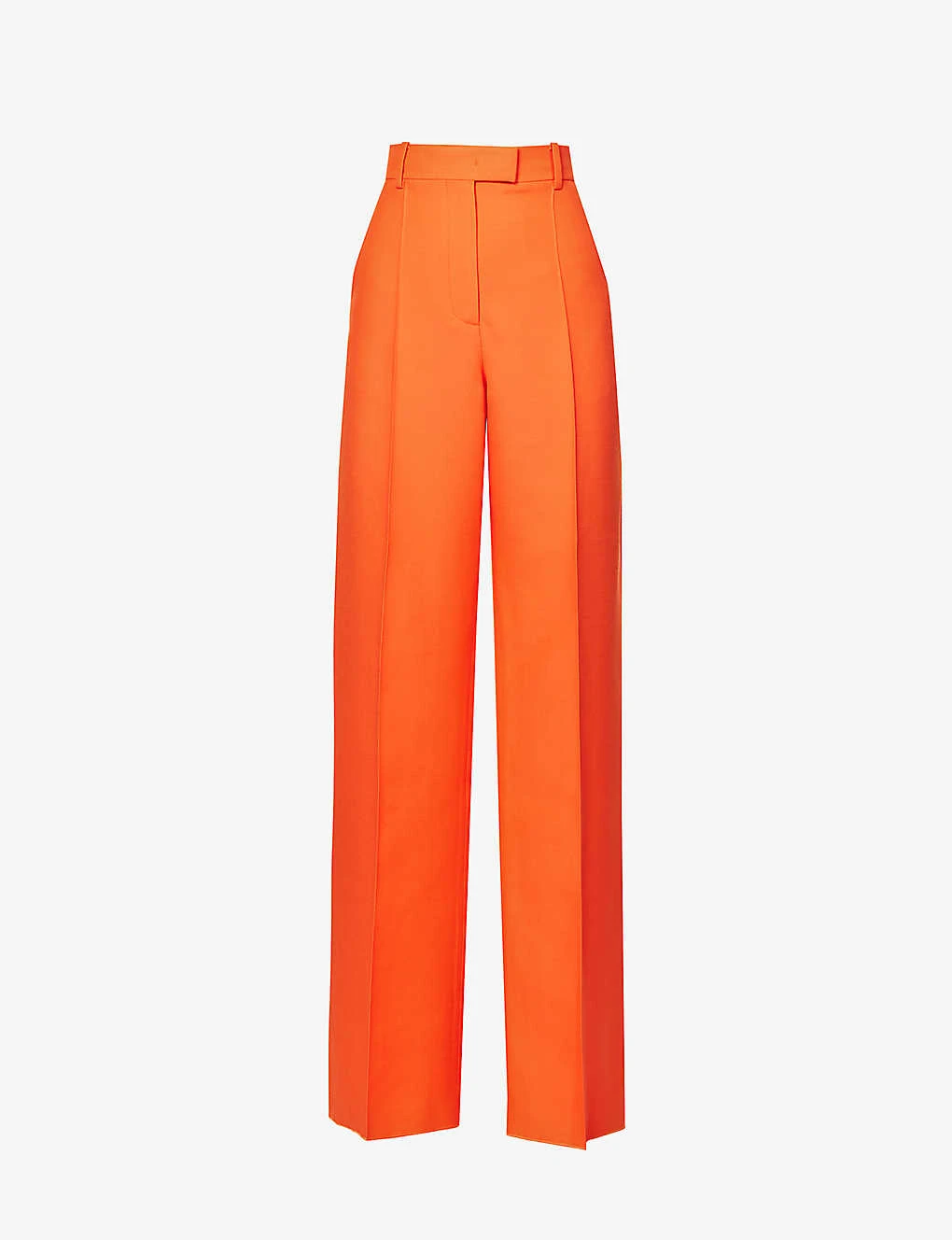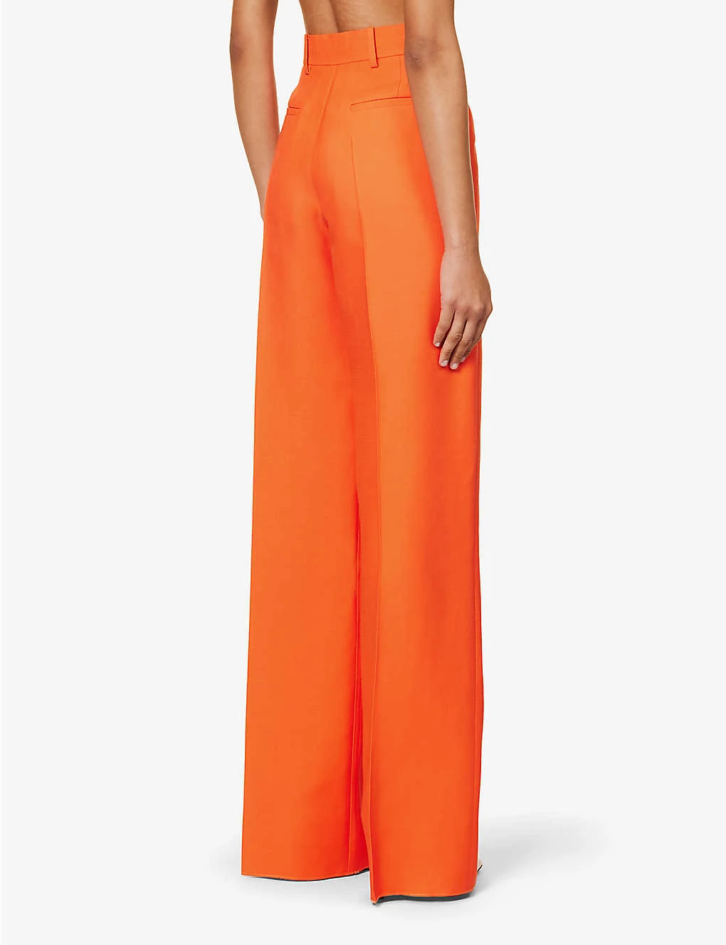 Valentino Pantalone Straight-leg High-rise Wool And Silk-blend Trousers