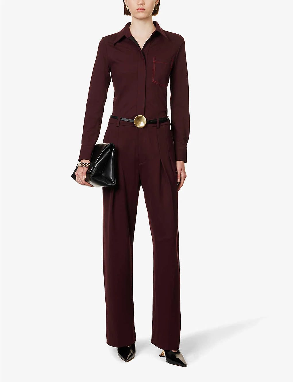 Victoria Beckham Pleated Straight-leg High-rise Stretch-jersey Trousers