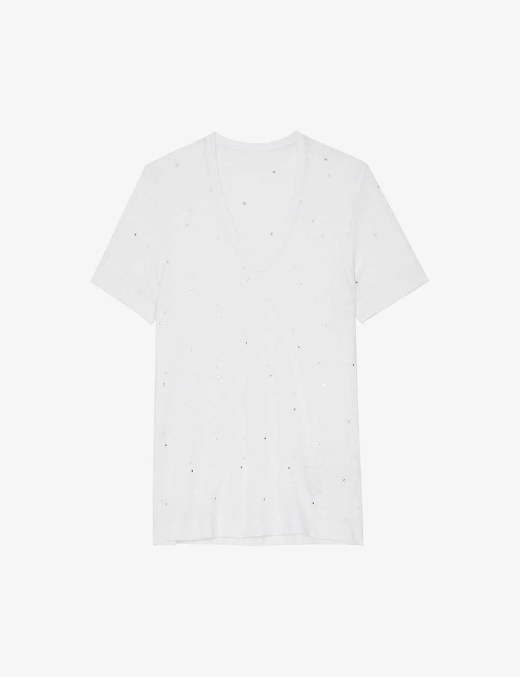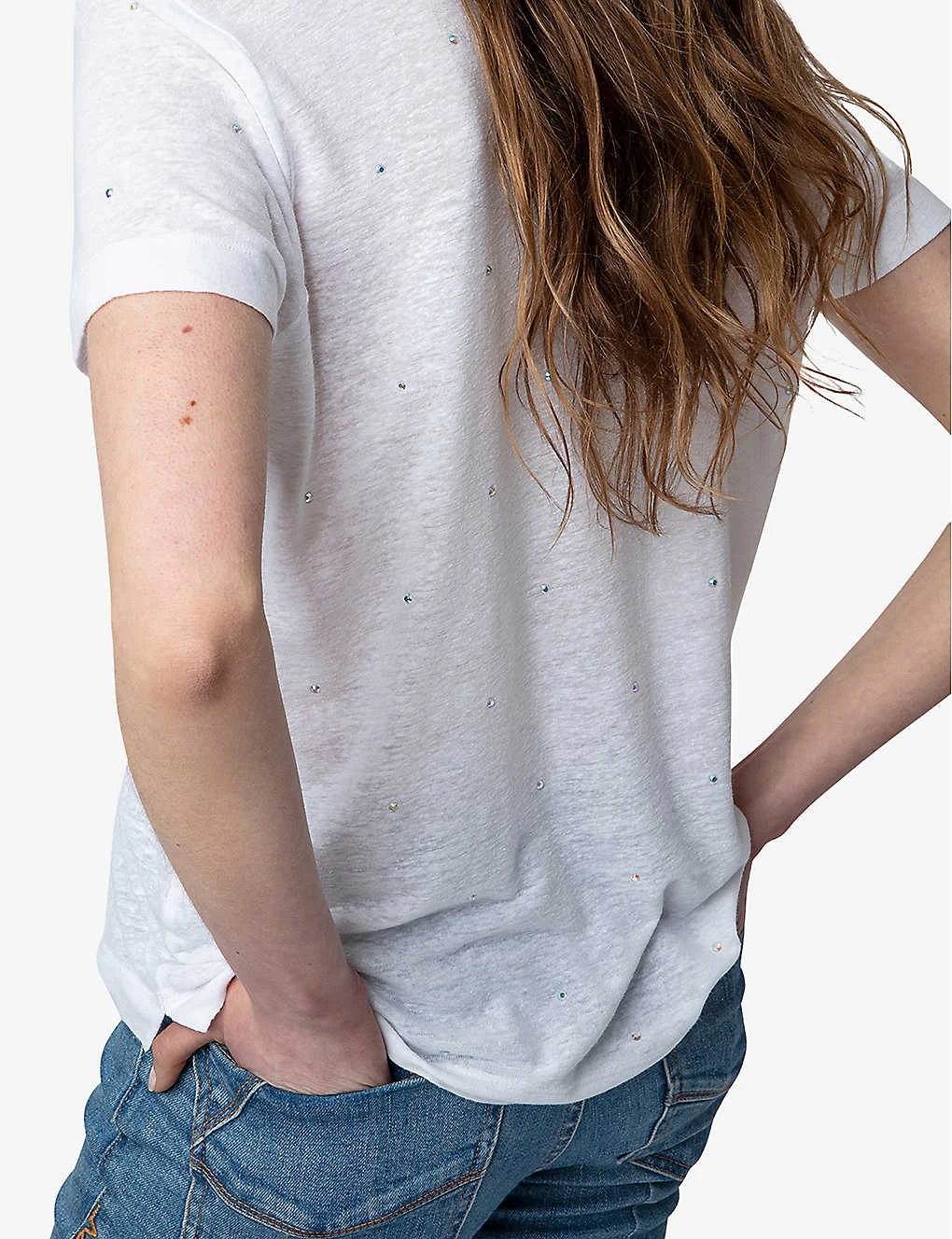 Zadig & Voltaire Wassa Crystal-embellished Linen-blend T-shirt